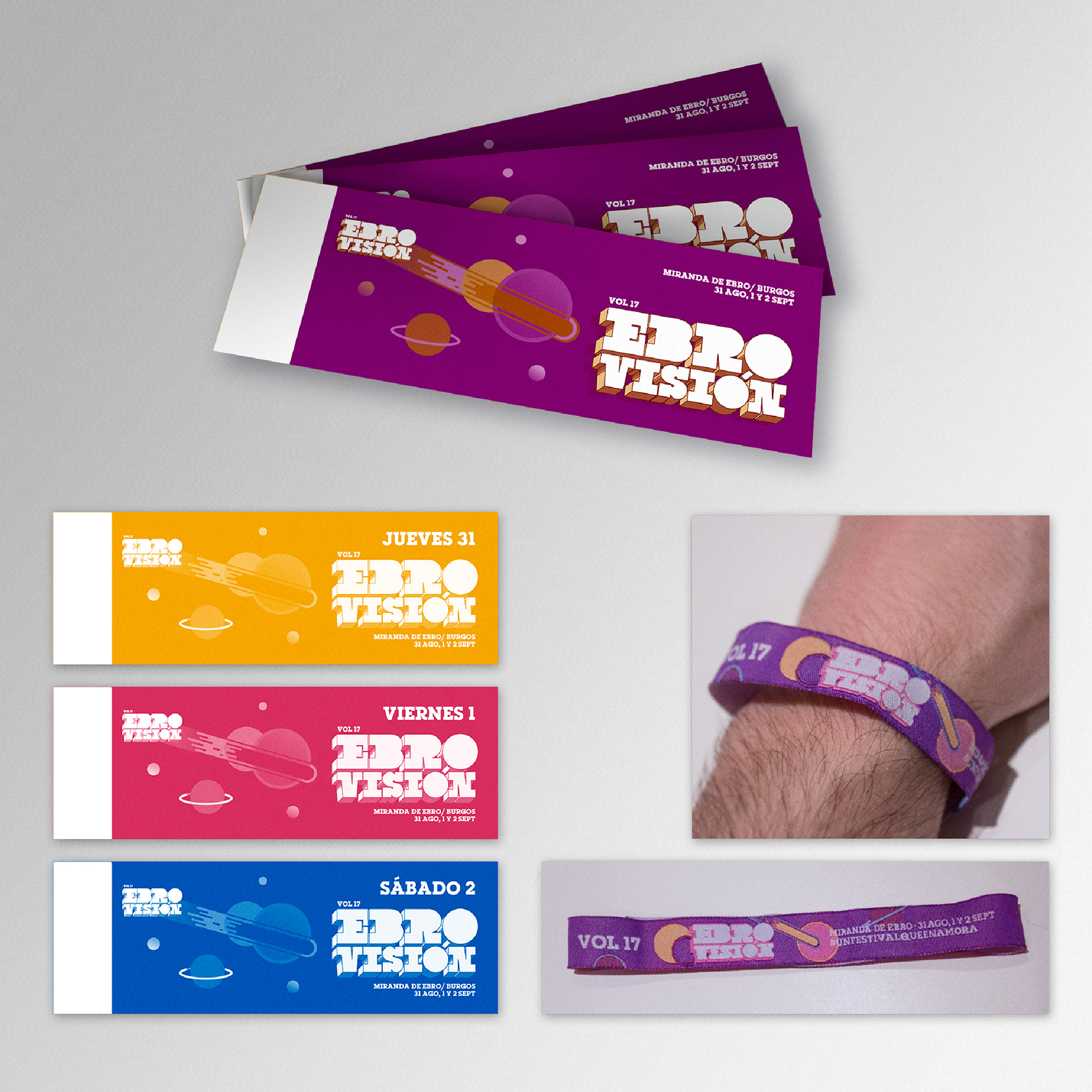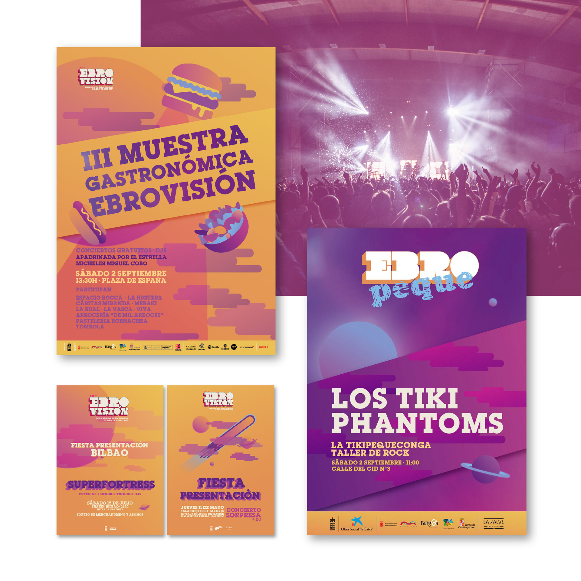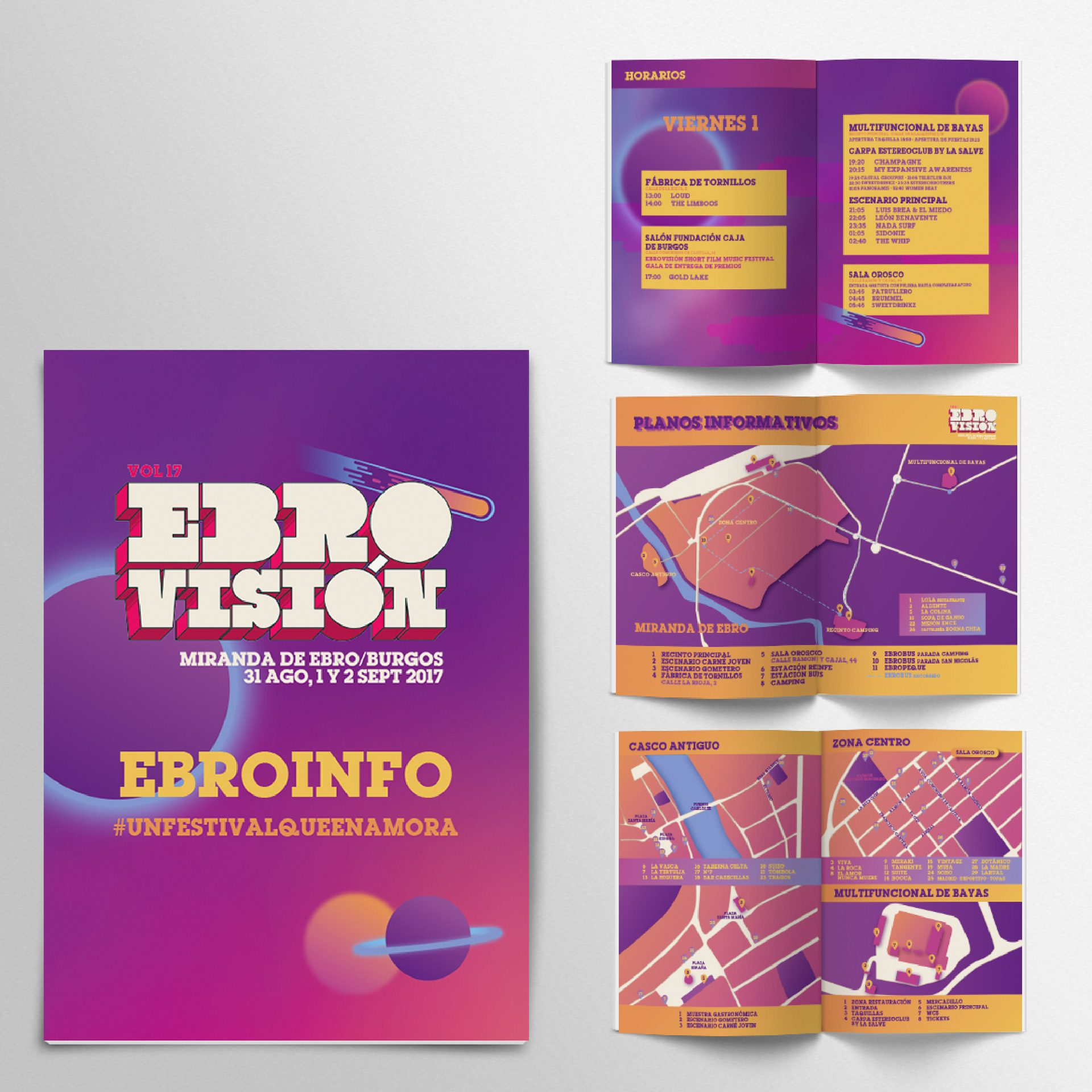 Identidad visual y diseño gráfico de la XVII edición del Festival Ebrovisión, de Miranda de Ebro. Artistic direction and graphic design for the music festival Ebrovisión, Miranda de Ebro, Spain